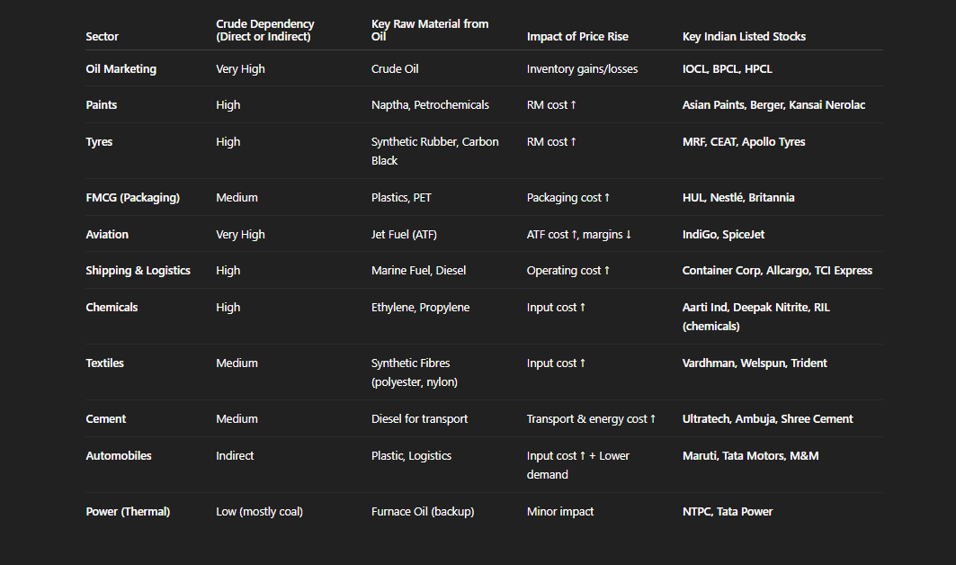 The degree to which various Indian industries are impacted by crude oil price fluctuations depends on their direct or indirect dependency on crude oil or its derivatives.